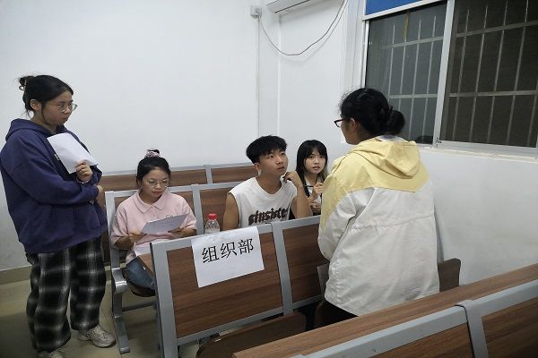 全体报名同学在化工院一楼大厅候场,按照部门顺序分别进行面试。在此次团委的面试中,部门负责人针对此次招新工作做了充足准备,对面试者的各方面能力进行了较全面的考察,主要考量面试者本身优势与该部门工作的是否适配、工作与学习时间是否冲突、面试者的工作态度是否积极等问题,并结合现场面试者临场反应能力进行综合评定遴选。