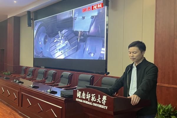 会议伊始,颜建强简单介绍了金工实习是什么,并回答了为什么要开展金工实习。随后颜建强为参加会议的学生播放视频以介绍机械狗、机械臂等金工技艺,使用图文结合的方式为学生介绍了工业机器人的工作场景。