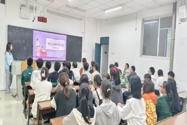 团支部书记田灵俐通过使用PPT、视频等方式,让2309班的学生了解和学习了就业不等于成功、价值观引导就业选择、追求兴趣与发展的平衡和创造社会价值才是就业的目标,知道了寻找适合自己职业的方法和新时代新青年正确的就业观应该是乐观向上的,青年所做出的选择应该是在实践中所发现和了解到的。