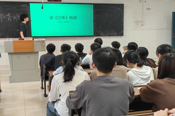 活动伊始,杨依依向大家简要介绍了阅读的重要性、此次活动目的以及活动的具体流程。此后,由刘子烨、王庆赟同学依次上台对自己感兴趣的书籍进行分享。刘子烨就《燕食》一书分享了自己独特的见解与感悟,同时她带入了自己阅读的经历,为同学们朗读了书中的一个故事片段。王庆赟同学以自己阅读习惯的养成经历切入,讲述了《三体》一书对他的影响,对他的教育意义。两位同学分享结束后,其他同学轮流发表了自己对此次活动的感受,表明体会到了阅读的魅力。