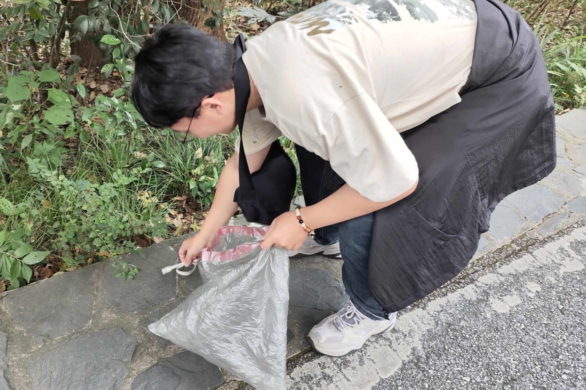 志愿者们于13时30分集合并完成签到,随后按照预先拟定的路线上山。在上山途中志愿者们随手拾起路边的垃圾,并装在自带的垃圾袋里。抵达山顶后,志愿者们统一进行休息并拍照纪念。直至志愿活动结束,每名志愿者都尽最大努力完成此次活动。