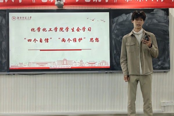 (通讯员 刘雅凯)为引领成员思想政治,进一步筑牢成员坚定不移听党话、跟党走的信仰之基,10月21日19时化工院学生会在至善楼410教室开展“思想旗帜”主题团日活动。此次活动的内容为学习“四个自信”和“两个维护”,主讲为学生会执行主席谭进杰,参与成员为学生会全体成员。
