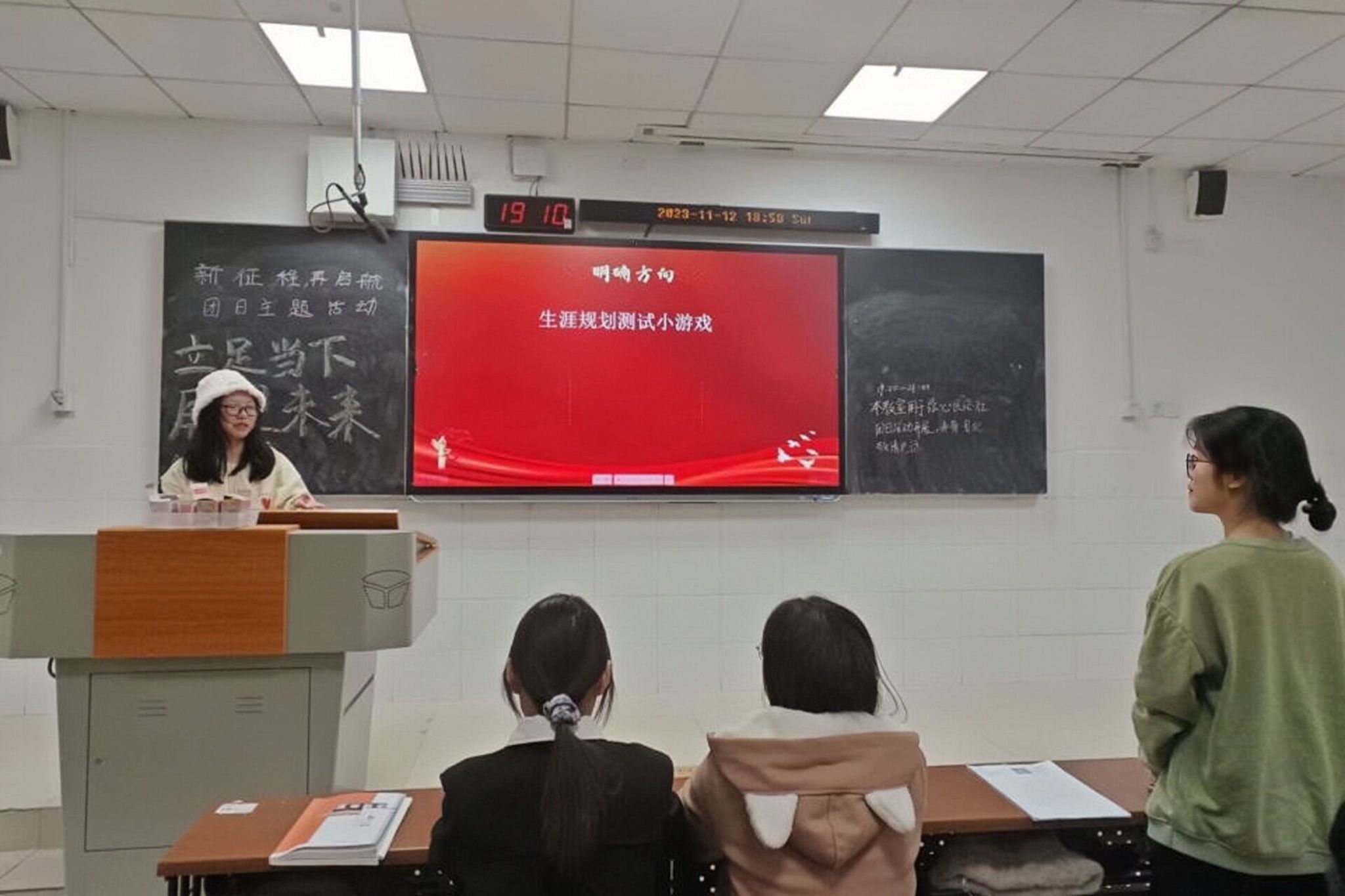 活动伊始,王燕介绍此次活动主题及活动名称,通过PPT详细讲解“新征程”的主题涵义以及时代背景,并以此再深入说明“再启航”的时代性与社会性。在帮助同学理解当下时代发展现状的同时,王燕也让同学结合自身能力与时代相融合,体现与国家命运的共进退。理事会成员也踊跃分享自己对当下新时代发展的感想以及对未来的展望。结束理论学习后,王燕又组织了有关生涯规划心理测试小游戏的互动环节,从生涯规划的角度,为同学们提供更深更广的发展方向:立足自身当下特点,展望美好未来。活动结尾,由王燕进行总结并宣布活动结束。