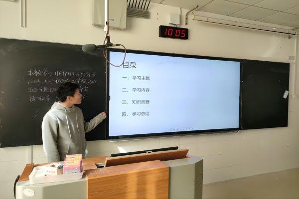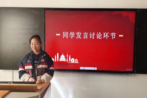 此次活动开始前,方磊利用班级官方账号对此次秋季理论学习活动进行宣传,并通知班级学生进行自主学习与讨论,为深入了解习近平新时代中国特色社会主义思想做好准备。此次秋季理论学习活动分为四个部分:理论学习环节、知识问答环节、发言讨论环节和学习总结环节。理论学习环节中,方磊针对学习贯彻习近平新时代中国特色社会主义思想主题教育工作进行介绍和宣传。知识问答环节中,学生们举手回答电脑屏幕上的四个问题。发言讨论环节中,学生宋思莹和王雅轩上台分享自己对于习近平新时代中国特色社会主义思想的学习心得。学习总结环节中,方磊总结了此次活动的学习成果,解决了学生们的一些疑惑。