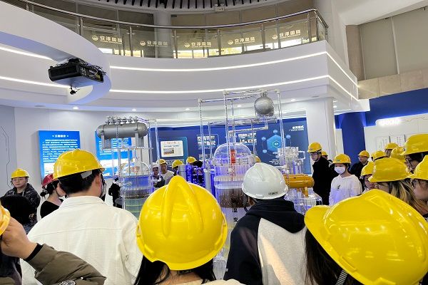 下午15时37分,在参观广电计量的行程结束后,化工院2106班马不停蹄赶往下一个见习公司——湖南安淳高新技术有限公司。2106班全体成员在安全员的带领下参观了该公司的设备制造工厂,亲身感受一些不同于学校实验室的超大反应设备并发出了自己的疑惑。最后讲解员老师给全体同学讲叙了一整个工艺的流程,带同学们了解了该流程的建筑模型。