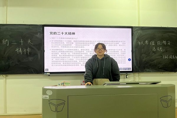 在活动开始的时候,万梦婷组织大家观看了《党的二十大精神基层理论宣讲微视频》。视频讲解了“党的二十大精神”的具体表现,以及作为新时代青年的大学生们应当怎样去做。随后,同学们就“党的二十大精神”展开讨论,在该环节中,同学们积极发言,周锐对当代大学生们提出了要做到“知行合一”的建议。活动最后,万梦婷表示,希望通过此次主题班会,同学们都能更好的理解“党的二十大精神”。