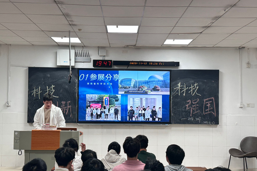 此次活动由林毅轩致开幕词,2202团支部副书记杨子昂为支部成员介绍科技创新的内涵与科技历史,2207班团支部副书记王康耀介绍观湖南省科技馆心得。最后由2207班团支部书记张喆政组织教育活动并致闭幕词。