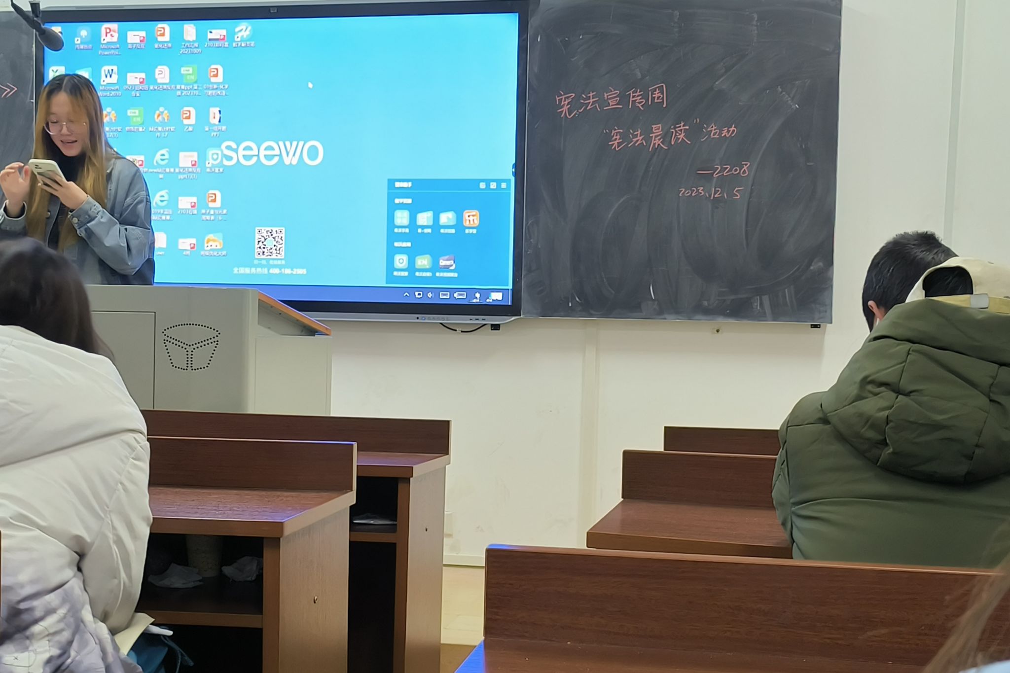 (通讯员王天一)12月4日上午8时,为学习宣传习近平法治思想,大力弘扬宪法精神,伟德国际19492208班团支部在化学楼217教室开展“宪法宣传周系列活动之宪法晨读活动”。此次活动主要目的是加大宪法宣传教育和普法力度,引导班团内部形成尊崇宪法、学习宪法、遵守宪法、维护宪法、运用宪法的良好氛围,为奋进新征程汇聚起强大法治力量。