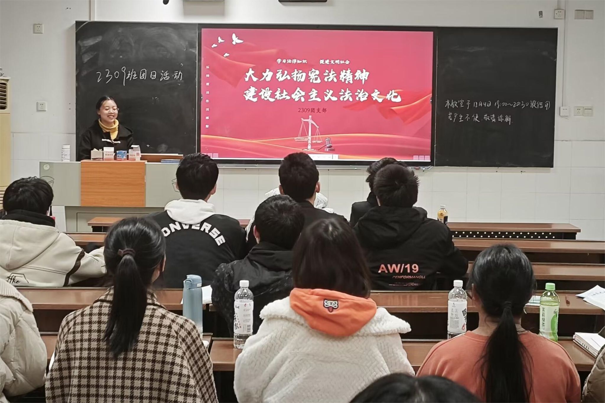 (通讯员 田灵俐)12月4日19时,伟德国际19492309班召开“大力弘扬宪法精神,建设社会主义法治文化”主题团日活动,此次活动由团支部书记田灵俐主持,以线下面授的方式,以宣传片,宪法歌曲传唱和有奖问答的形式进行,2309班全体成员积极参会。