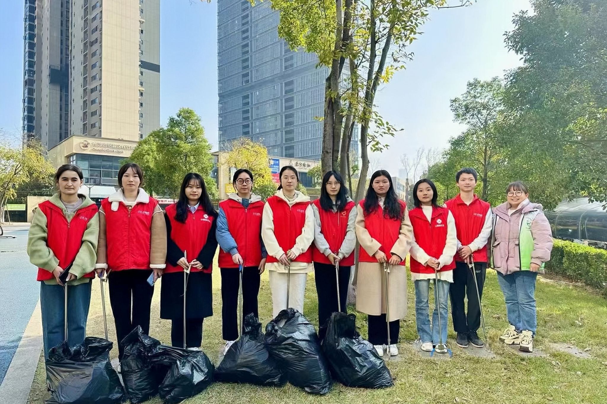 在工作人员以及组长易婕的带领下,从观沙岭街道办事处出发,沿银杉路与边洲围路,开展以拾捡白色垃圾为主的小组志愿活动。为了活动开展的有效性,小组成员均采用分工合作方式,对花坛、人行道以及草地等中的塑料与垃圾进行逐一清扫拾捡。在此过程中也遇到了例如垃圾过多过大、拾取困难等等,但在组员们的密切配合与相互协助下,均得到逐一解决。