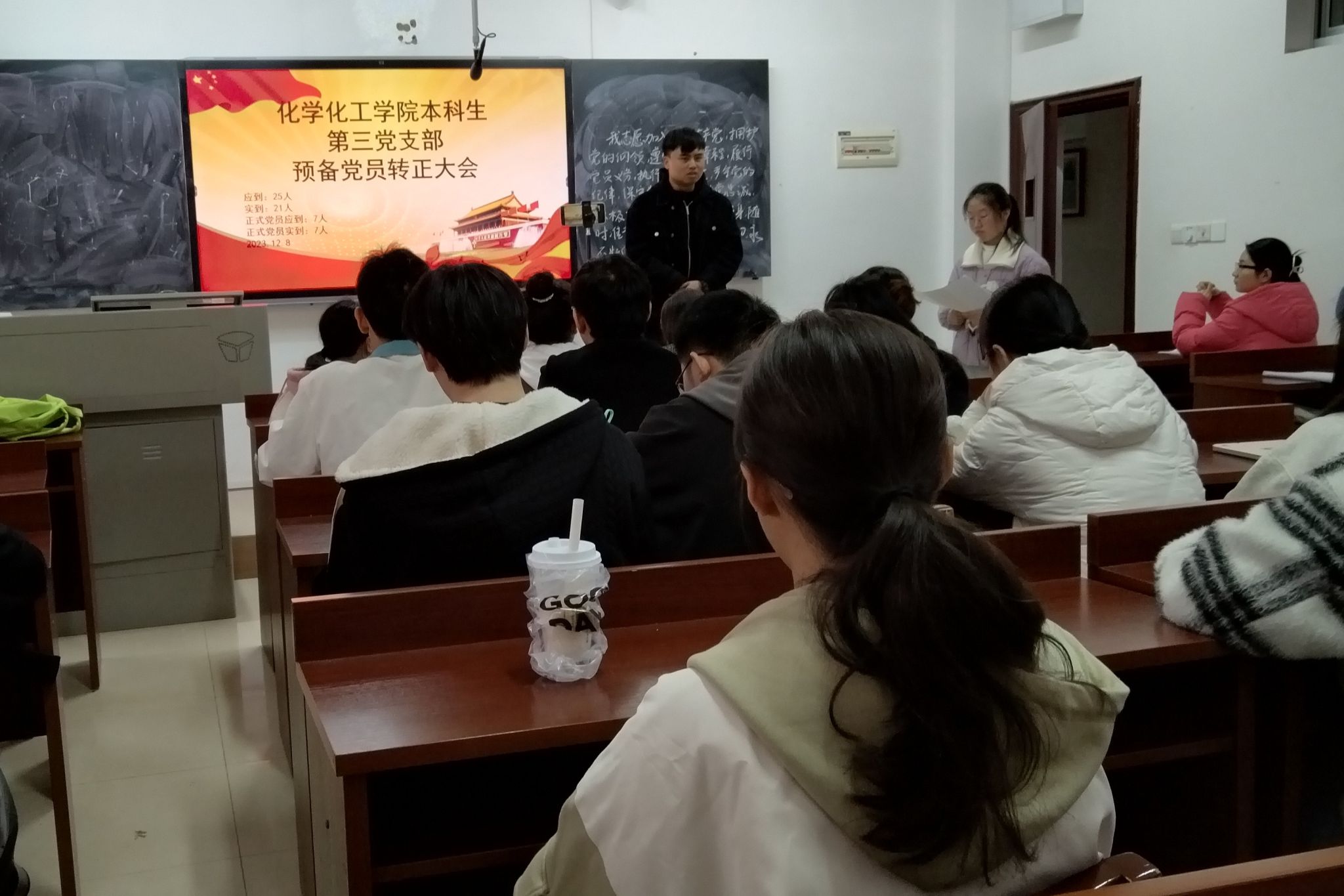 (通讯员 周福中)12月8日12时30分,伟德国际1949本科生第二党支部和第三党支部在化工院210教室举行了预备党员转正大会,讨论了关于严晋等8名同志申请转为正式党员的问题。与会人员为本科生第二党支部第一书记唐健清同志、本科生第二党支部的20名同志、本科生第三党支部的21名同志。此次会议由本科生第二党支部书记余思宇同志主持。