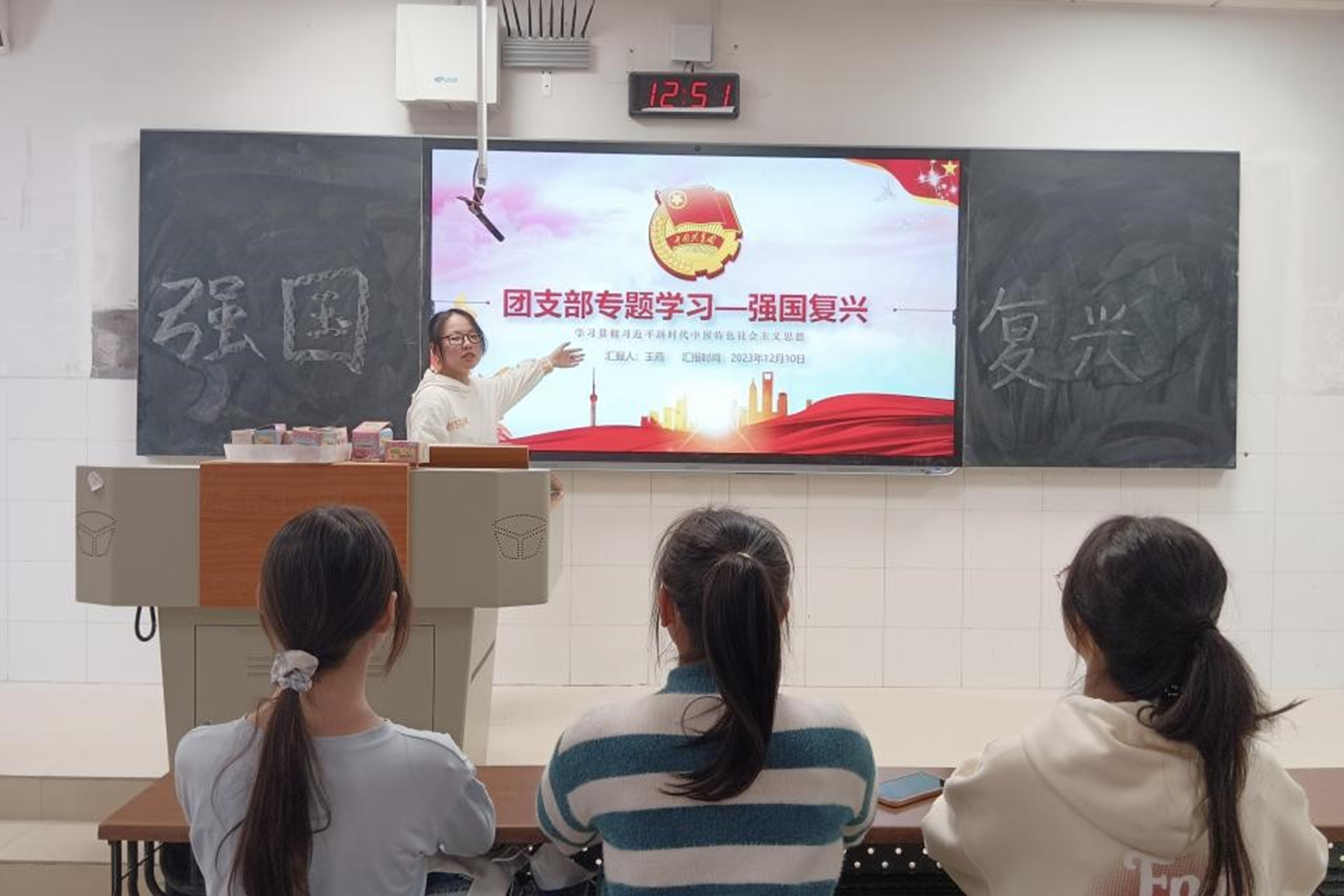 此次专题学习会议共分为“战略部署”、“重要论述”、“目标任务”、“正确道路”四个部分。会议伊始,李思仪等理事会成员依次上台阐述自己对于“强国复兴”的主题理解。每位理事通过PPT讲解或图片展示的形式,以“强国复兴”的基本含义为着力点,从过去、现在、未来三个维度,结合中国式现代化的重要论述来叙述强国的重要性和复兴的正确道路。会议最后,理事会成员们各自分享总结此次专题学习会议的心得体会,王燕进行整理点评并宣布会议结束。