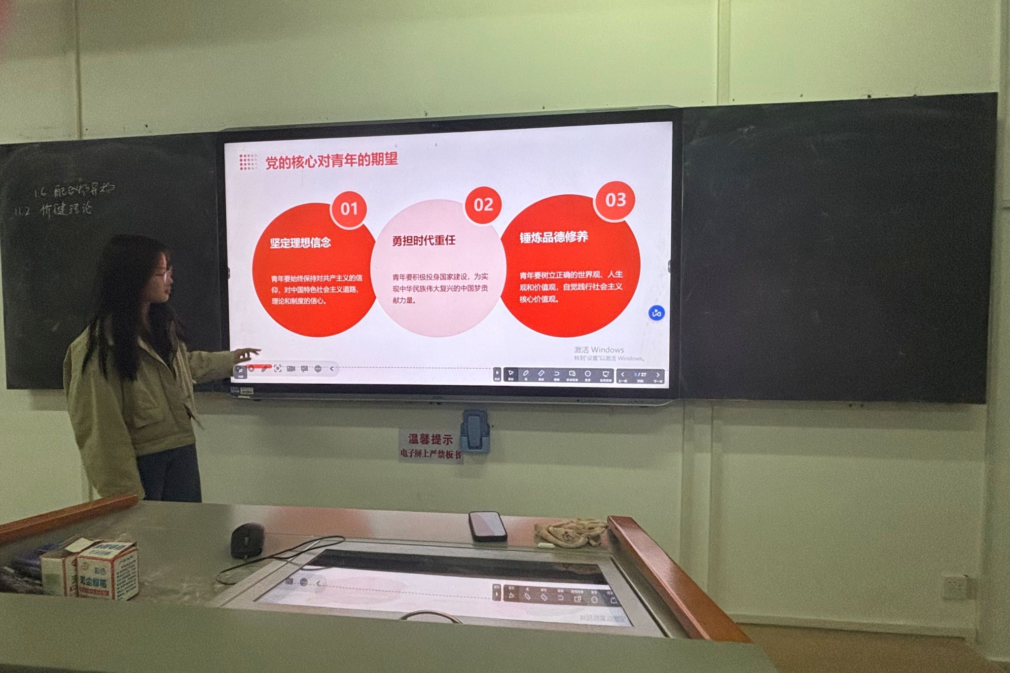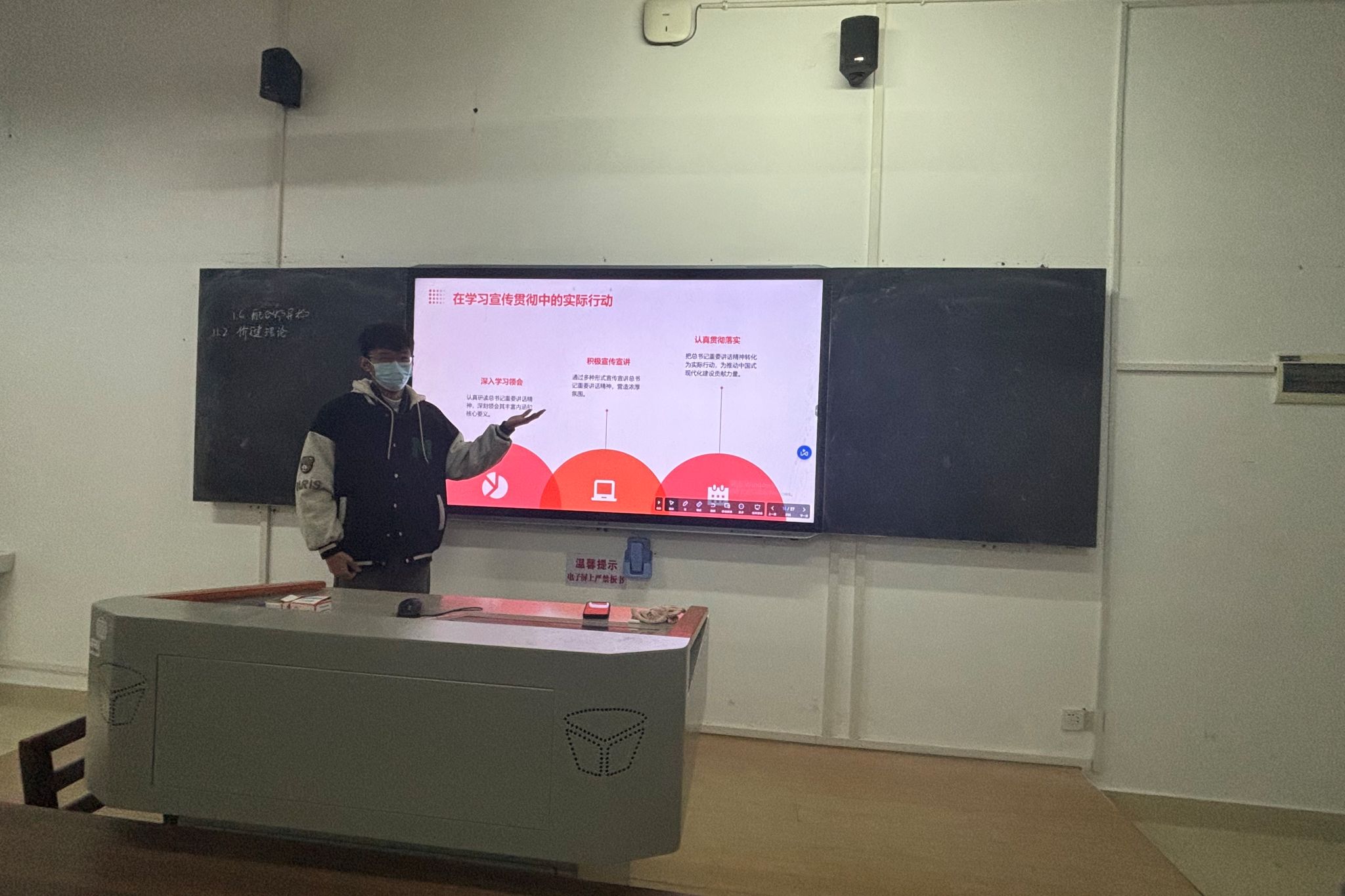 活动伊始,邵菁逸介绍了此次团日活动主题——学习宣传贯彻习近平总书记重要讲话精神。会议中,邵菁逸借用习近平总书记的讲话说明了青年在党和国家事业中的重要作用。新时代,新青年,共青团员应当肩负起新时代新征程党赋予的使命任务,传承弘扬优良传统,坚持创新,团结凝聚在党的周围,为推进强国建设与民族复兴而接续奋斗。同时,邵菁逸强调应当深刻理解习近平总书记的讲话发言,内化于心,外化于行,在日常生活中践行。