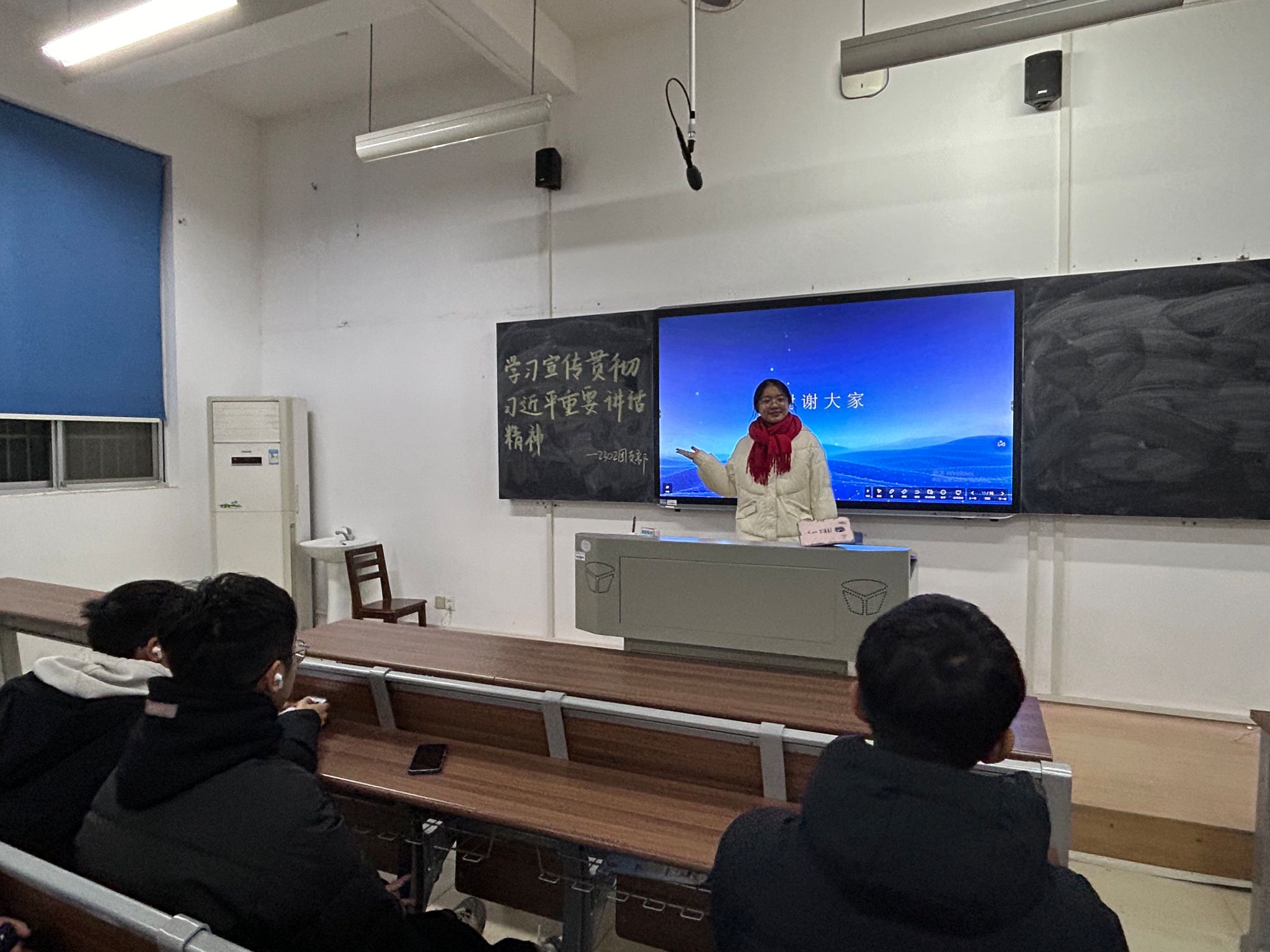 (通讯员 韩毅)为学习宣传贯彻习近平总书记重要讲话精神,提高团支部成员的思想觉悟,加强支部成员与社会的联系,伟德国际19492302班团支部于12月17日20时在化学楼117教室开展了12月的团日活动。此次团日活动以“担当时代使命,塑造新时代青年”为主题,带领同学们学习贯彻习近平总书记重要讲话精神。活动由2302班心理委员潘晗悦主讲,2302班全体学生参加此次团日活动。