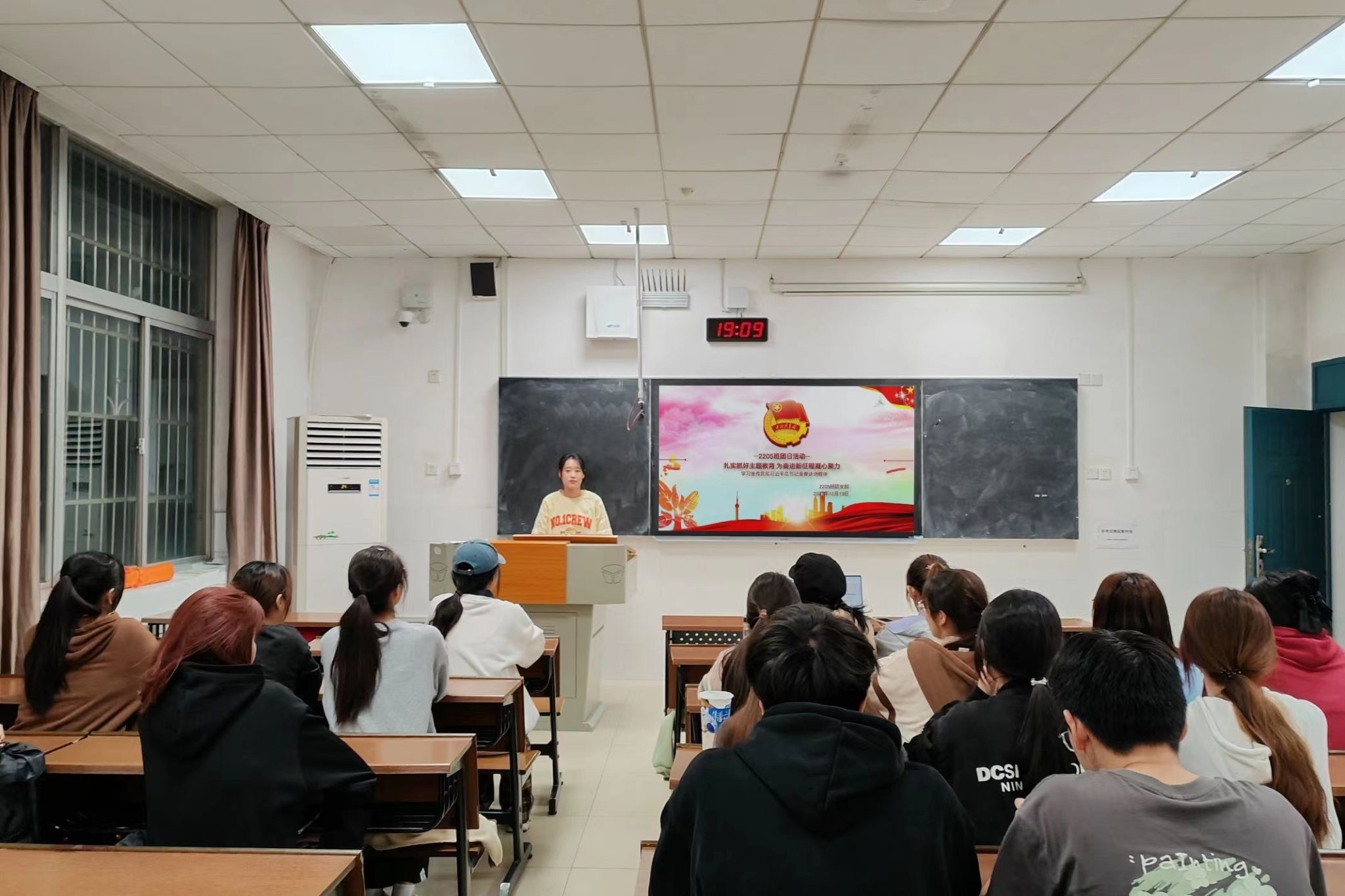 活动伊始,刘佳桐为此次活动致开幕词,介绍了习近平总书记重要讲话精神的具体内容。活动中,刘佳桐从传承弘扬优良传统和坚持改革创新两个方面强调当代青年积极参与、勇担重任、冲锋在前的重要性,传达总书记希望广大青年团结一致、全力以赴、攻坚克难的厚望,激励同学们贯彻习近平总书记重要讲话精神。最后,刘佳桐以认真学习领会习近平新时代中国特色社会主义思想为例,说明如何贯彻总书记的嘱托。
