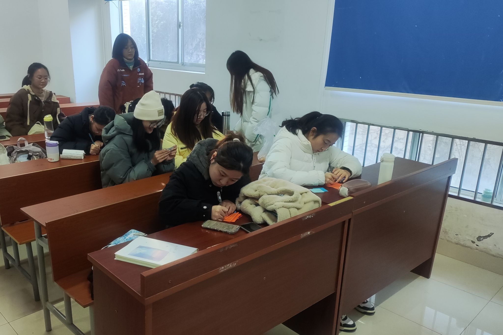 活动开始前,负责书写化学科普小知识的志愿者们和负责折纸的志愿者们在化工院219教室集合,总负责人唐娜妍组织志愿者们完成签到,做好化学知识的书写和折纸工作。负责分发折纸作品及糖果的同学于当天下午六点在化工楼前坪集合,领取糖果和纸鹤后沿着化工楼和图书馆一路,向过路行人送出圣诞祝福,同时向路人科普生活中的化学小知识,揭露学习化学的趣味。