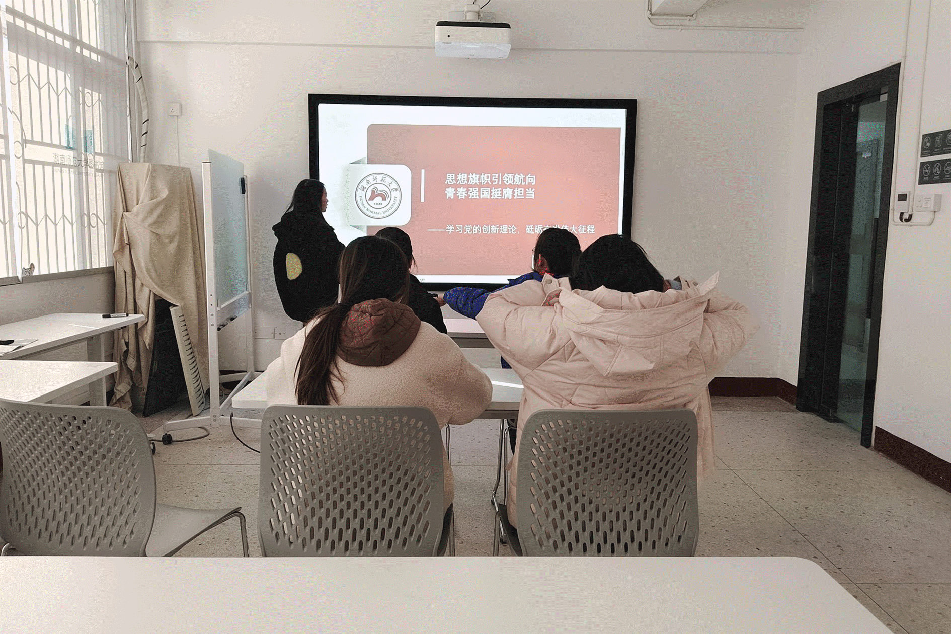 会议伊始,丁芸简要介绍此次专题学习会议的主要内容及流程。此次专题会议的主要目标为学习党的创新理论,砥砺奋进伟大征程。此次专题会议分别从“两个结合”、“六个必须坚持”、“十个明确”、“十四个坚持”四个方面开展。每位理事通过PPT讲解或图片展示的形式,详细讲述各个部分的基本涵义与现实体现,同时结合自身发展与时代需求,就如何高举“思想旗帜”的重大命题,作出深刻的思考和长远的规划。会议最后,每位理事会成员分享总结此次专题学习会议的过程感受与心得体会。