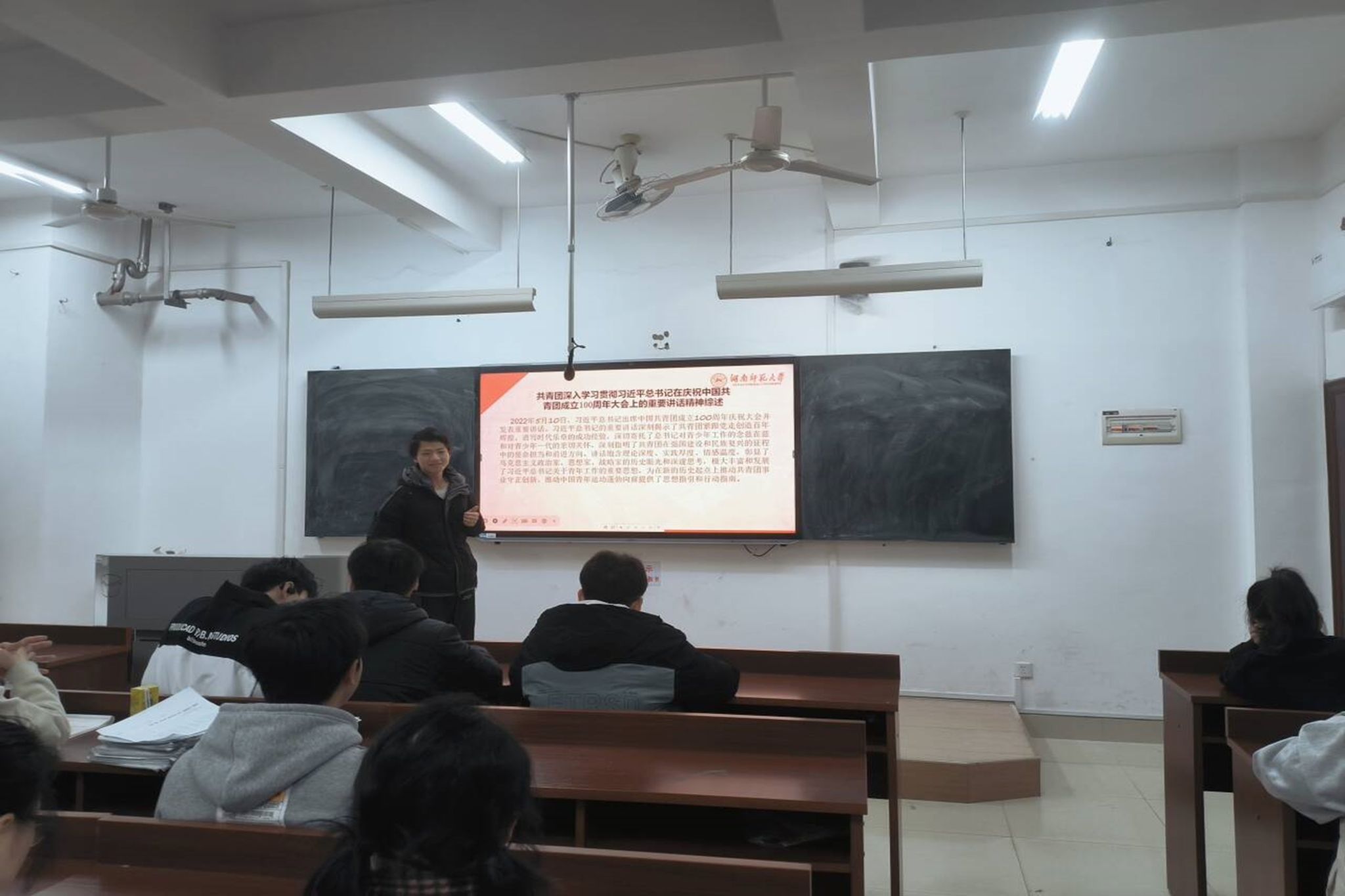 邓锋同学通过思想旗帜、坚强核心、强国复兴、挺膺担当四个学习专题,回顾了习近平新时代中国特色社会主义思想的核心要义,感悟在以习近平同志为核心的党中央坚强领导下、在习近平新时代中国特色社会主义思想科学指引下,新时代党和国家事业取得的历史性成就、发生的历史性变革等等,同时通过党章团章明确了共青团与党的关系及其权利与义务。通过学习习近平总书记在同团中央新一届领导班子成员集体谈话,我们要切实肩负起新时代新征程党赋予的使命任务,在中国式现代化建设中挺膺担当。另外在习近平总书记在庆祝中国共青团成立100周年大会上的重要讲话精神综述中,深刻揭示了共青团紧跟党走创造百年辉煌、谱写时代乐章的成功经验,深切寄托了总书记对青少年工作的念兹在兹和对青少年一代的亲切关怀,深刻指明了共青团在强国建设和民族复兴的征程中的使命担当和前进方向。