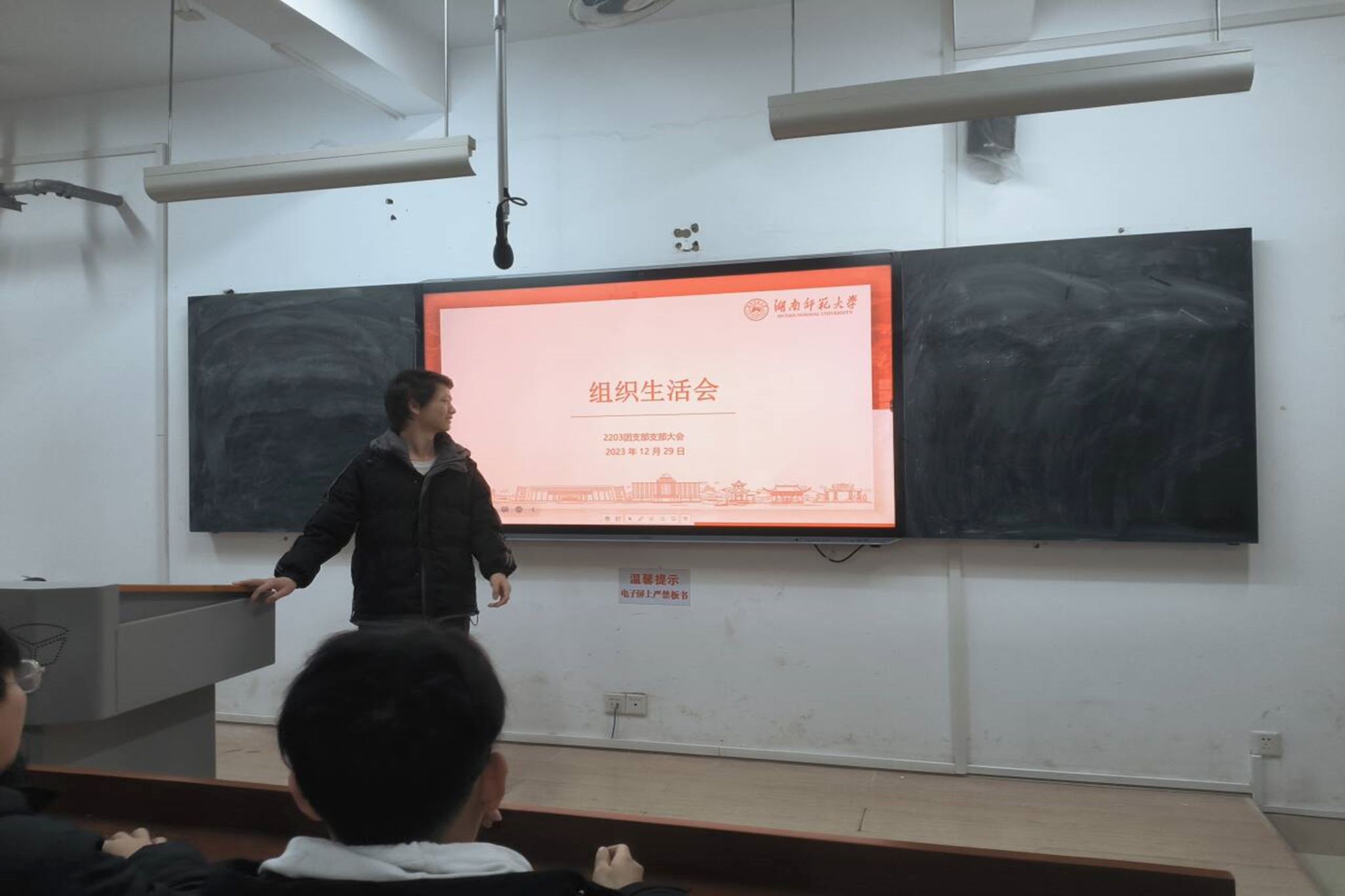 (通讯员 邓锋)12月29日下午,伟德国际19492203班团支部以支部大会形式召开了组织生活会,此次会议由2203班团支书邓锋主持,支部大会的主要内容有主题教育总结,通报支部委员,团员自我评议,团员互评,支部评议,支部委员评议以及优秀团员投票统计,重温入团誓词。