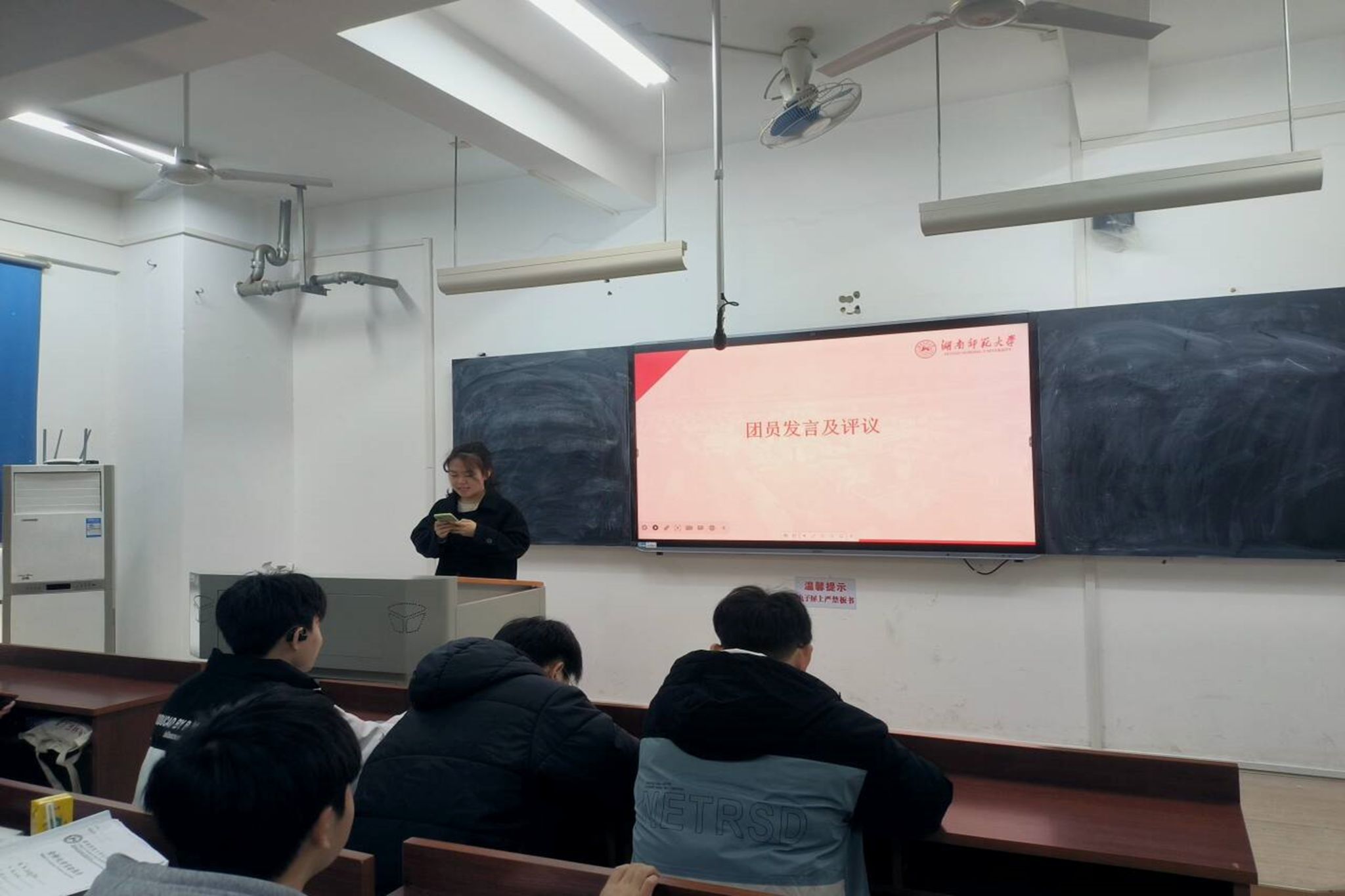 邓锋同学以习近平总书记重要讲话精神为背景,以四次主题教育学习为主要内容向同学们作了的深入总结。同时针对支部委员任职情况做出来深入客观的通报与反思,查找差距不足;在团员自我评议环节中,以范俊同学为代表的多位同学都对自己本学期的团员工作做了有关评议,并深刻反思了自身工作的不足之处;以钟月平、周健玮为代表的支部团员们开始了对其他支部团员的互评,提出了中肯、切实的团员评议分析,督促者其他团员们在今后的学习、团员工作中更加尽心竭力。在支部委委员评议中,支部委员同样仔细加以分析,提出有待提升之处。会议最后进行优秀团员投票、统计。每人2票,选出共计12位优秀团员,并公布了相关结果。