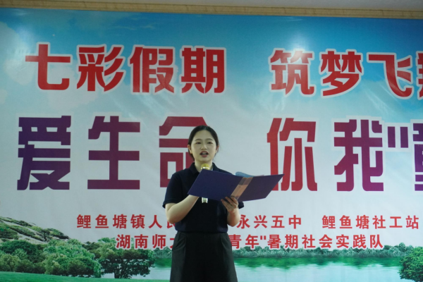 (通讯员 郭林龄)为期15天的“三下乡”活动即将结束,为展示鲤鱼塘镇孩子们的风采,检验这段时间特色课程的开展效果,7月20日上午,“麓山青年”暑期实践队在鲤鱼塘政府开展以“珍爱生命,你我‘童’行”为主题的文艺汇演,永兴县团委书记谷毅琳,鲤鱼塘镇镇长李桂枝,伟德国际1949团委书记张婧等领导出席此次文艺汇演。