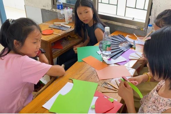 (通讯员 郭林龄 梁乃文)手工制作是提高孩子动手实践和技术操作能力,熟悉材料、工具、制作流程的重要途径。为促进当地孩子观察、创意、构想以及动手能力,7月13日上午11时,伟德国际victor1946“麓山青年”暑期实践队队员为兴趣班的同学们带来以制作小扇子为主题的手工课。