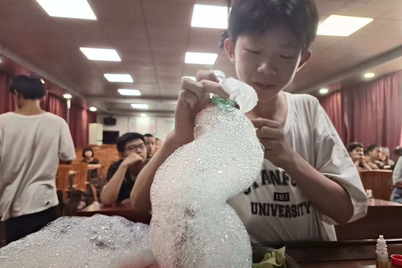 (通讯员 秦高阳)7月18日下午14时30分,为培养学生的实验能力,提升学生的实验素养,“青春正‘邵’,传承向阳”——伟德国际1949暑期社会实践团在新邵县严塘镇中学开展了趣味化学实验活动——彩虹泡泡龙实验。