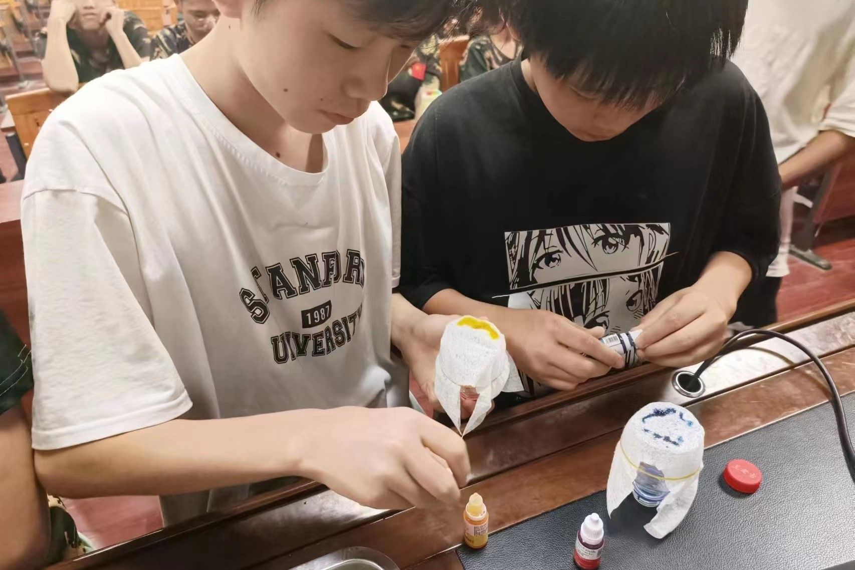 此次实验开始前,同学们认真听讲,基本上掌握了实验的基本原理和实验方法。在实验的过程中,同学们不仅学到了有关液体表面张力的知识,也了解到了有关色素的知识。亲身的实验操作既锻炼了同学们的动手能力,又增强了同学们的自信心。同学们积极分享感悟,实验技能和素养都得到了一定提升。