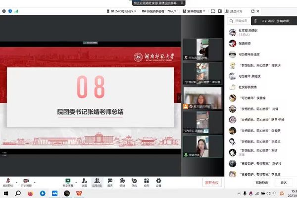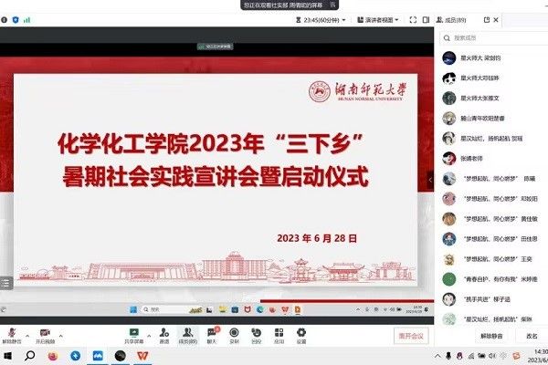 会议伊始,欧阳唯一致开场词,她结合自身经历讲述了进行三下乡活动的意义,并对2023年三下乡暑期实践队伍提出了一定期望。三支往年暑期实践团的负责人展示了他们过去的三下乡成果,分别从宣传、红色论坛、调研三个方面分享了他们的实践经验。前社会实践部负责人刘入源介绍了三下乡活动细则及往年三下乡奖项,同时也解答了同学们对三下乡的相关疑惑。周倩妮为同学们讲解了夏季晒伤、中暑知识及预防措施。张婧做总结发言,她列举了三下乡活动中需要注意的问题,提出队伍需要落实专项活动主题,并着重强调了活动中的人身安全问题,鼓励同学们积极参与到活动中来。