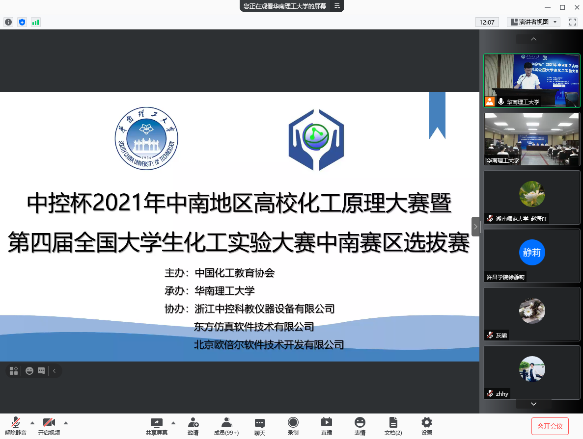 (通讯员 刘子璇 赵海红)7月24日-25日,第四届全国大学生化工实验大赛中南赛区选拔赛在华南理工大学的组织下,以线上形式如期举行。我院2019级化学工程与工艺专业本科生张成豫(男)、刘子璇(女)、王宏健(男)三位同学代表学校参赛,一举夺得中南赛区特等奖。