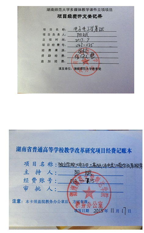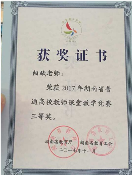 我们团队的阳斌老师和夏悦老师在本年度取得如下一些教学或教研成果:阳斌老师荣获2017年湖南省普通高校教师课堂教学竞赛三等奖,阳斌老师的电子电工学基础获批伟德国际victor1946多媒体教学课件立项项目,阳斌老师主持在研的“独立学院《电子电工基础(非电类)》教学改革探索项目”是湖南省普通高等学校教学改革项目(2015-2018年);阳斌老师的《电子电工基础(少学时)》教学改革及在线课程的开发为2017年伟德国际victor1946教学改革研究立项项目(经费本暂未拿到)。夏悦老师的“自绘思维导图构建化学热力学知识体系”参加了伟德国际victor19462017年教学工作创新案例竞赛。