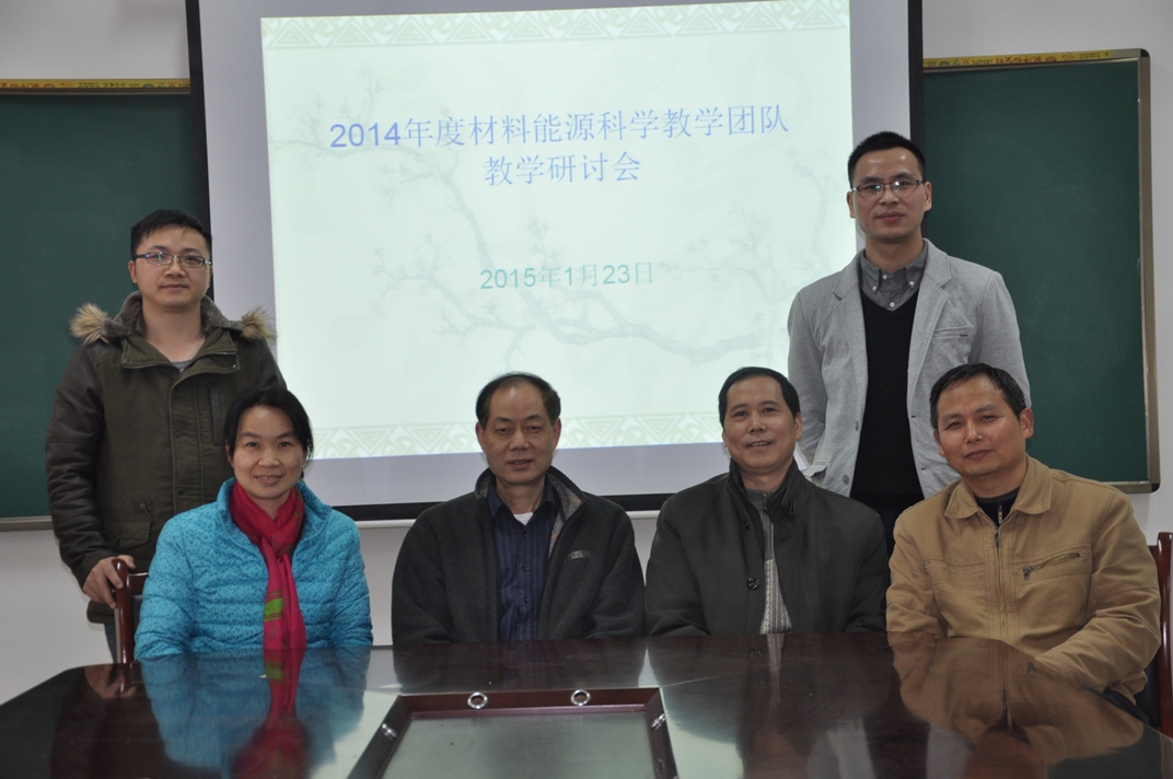 首先,教研室主任余丽萍从四个方面介绍了材料·能源教研室近两年来的工作:(一)勇挑教学重担:团队5位老师共承担了11门理论课和4门实验课程的教学任务;按照新修订的2013年版教学大纲,该团队将需要承担更多新课程,教学任务繁重。(二)组织教学研究:该团队目前承担1项省级教学改革项目同,1项校级的教学改革项目和3门校级精品课程的建设。团队鼓励青年教师积极参与学校的课堂竞赛,并给青年教师一定的指导;(三)注重师生交流:分别举办了2014级应用化学专业新生师生见面会、强化专业教育,2012级应用化学专业师生交流会、回答学生有关课程学习、考研、择业、就业等问题。(四)加强文体活动:在完成好教学工作和科研工作的同时,团队每年开展一次羽毛球比赛,促进老师们劳逸结合、加深了解、增进团结,以利于更好地开展教学活动。余老师还提出今后的教学活动要常态化,并着重提出了2015年应着手完成的教学工作。