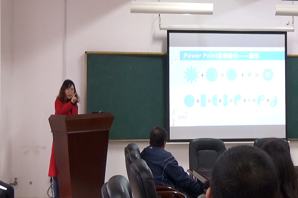 陈超汇报分享主题为信息化教学与课件制作,她从实用软件、教学素材的收集讲到图片处理技巧与微课的制作与合成,分享了资源下载方法,就文字、图片排版方面给予了建议。