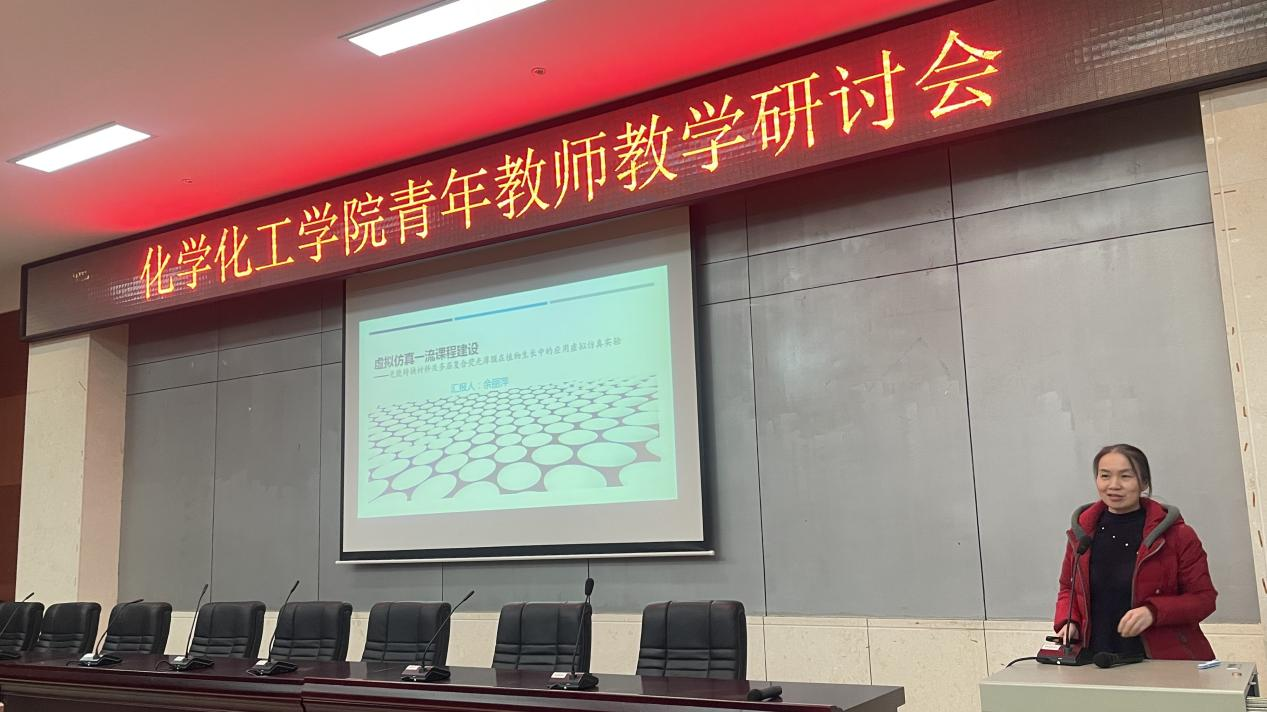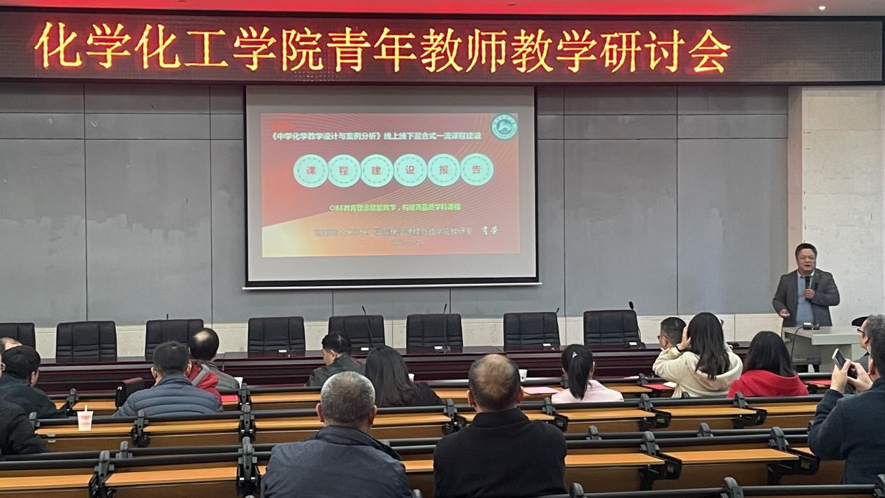 会议由谭亮主持,他介绍了一流课程的基本概念及其对一流专业的重要支撑作用,总结了学院一流课程建设情况。随后,杨蓉、胡瑞祥、谭亮、肖荣、徐琼、余丽萍、钟文周等七位教师分别以《科研成果与教学实践融合的机制探索》《无机化学实验线上一流课程建设》《分析化学实验线下一流课程建设》《中学化学教学设计及案例分析线上线下混合式一流课程建设》《化工原理实验线上线下混合式一流课程建设》《虚拟仿真一流课程建设》《价值引领,育人为本—课程思政建设永远在路上》为题作了报告。报告人介绍了在相关课程中引入科研成果、构建线上资源、开展系列教研教改、基于科研成果开发虚拟仿真实验项目、挖掘专业课程思政元素等方面的做法和经验。7位老师一致认为,课程建设要坚持“学生中心、产出导向、持续改进”的理念,面向人才培养目标,满足社会和用人单位对人才的需求,紧紧围绕课程目标开展教学工作,切实有效加强课程评价尤其是过程性评价,依据评价结果不断更新教学内容、改进教学方法,形成对毕业要求的强力支撑。