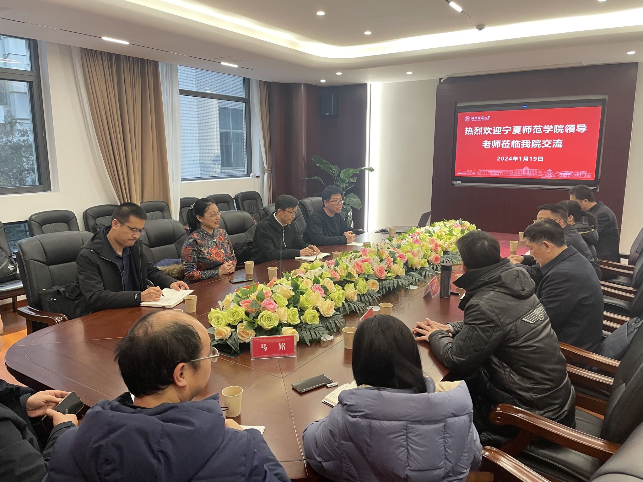 1月19日下午,宁夏师范学院副校长兼伟德国际1949院长阎云教授带队来我院进行交流,随行的有宁夏师范学院伟德国际1949副院长周生学、党委副书记吴之强、学术研究生导师组长丁建海教授。院长杨荣华教授、党委书记谭东波出席交流座谈。