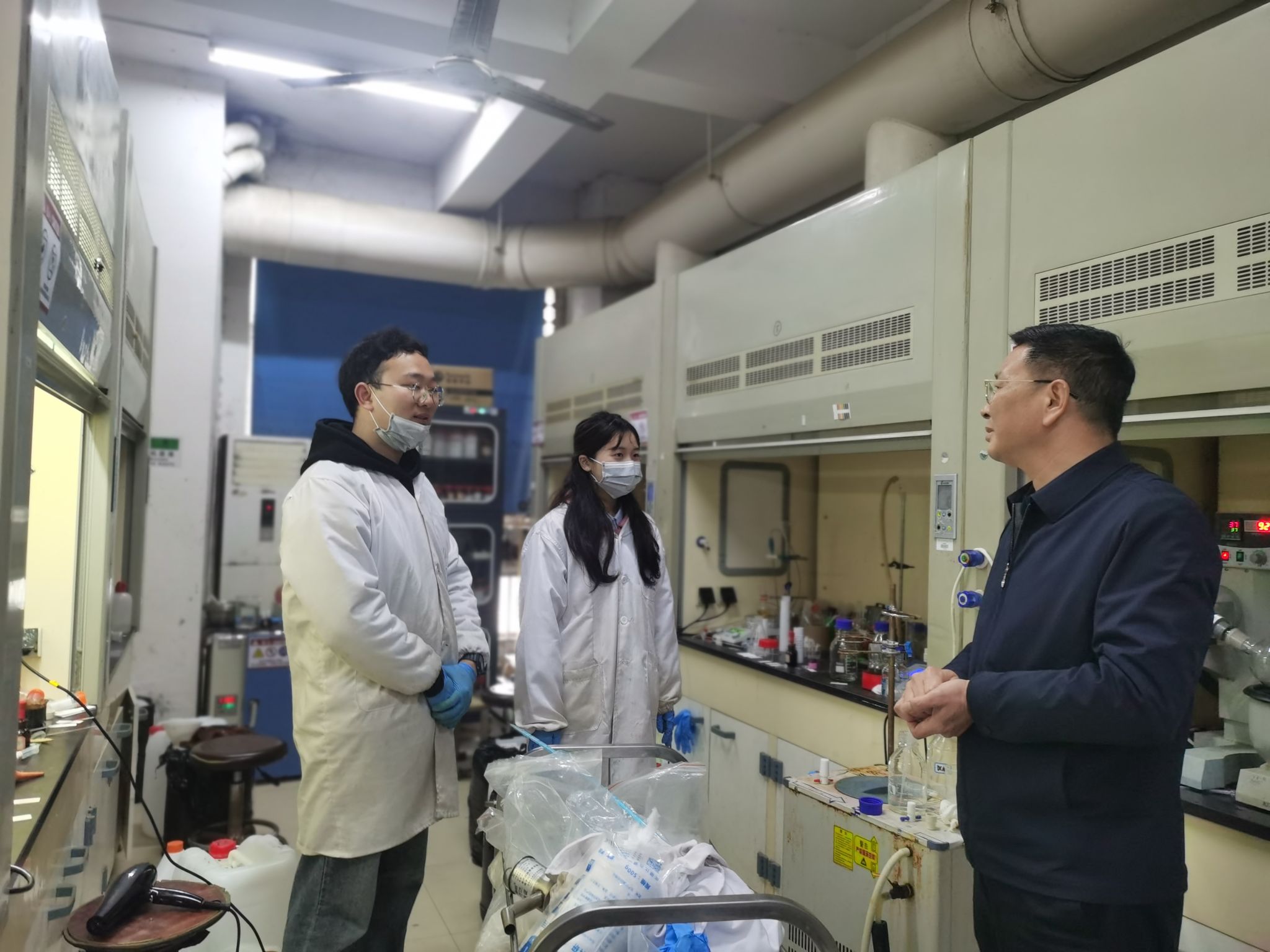 检查组对学院所有实验室的危化品、废料管理情况进行了重点检查,然后对学院的消防器材、消防通道进行了逐一排查,同时做到发现问题、记录问题、解决问题。谭书记强调,我院作为学校安全防护的重点单位,所有师生都应高度重视,对相关问题要做到立行立改。