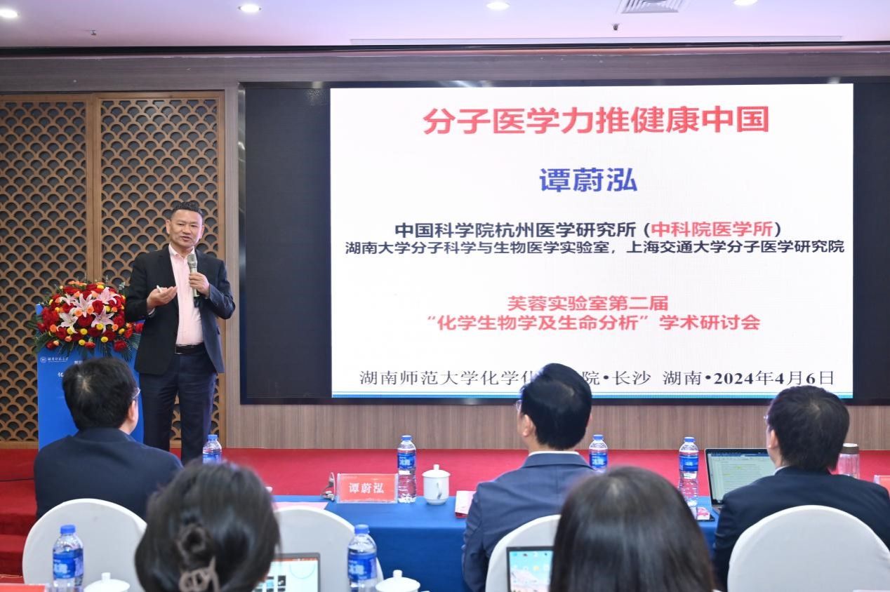 开幕式后,中国科学院院士谭蔚泓作题为《分子医学力推健康中国》的报告。他从健康中国时代的分子科学、健康中国和信息化时代的分析化学、健康中国时代的分子医学等三个方面深入分析了当前我国分子医学的研究前沿和发展现状,阐明分子医学对提升我国医疗健康事业、改善人民健康水平、推动健康中国战略落实落地的重要意义,并就分子医学领域加快实现核心技术自立自强、进行原创性引领性伟德国际和技术攻关、坚决扛起为中国人民的健康保驾护航的责任担当作了深入阐述。