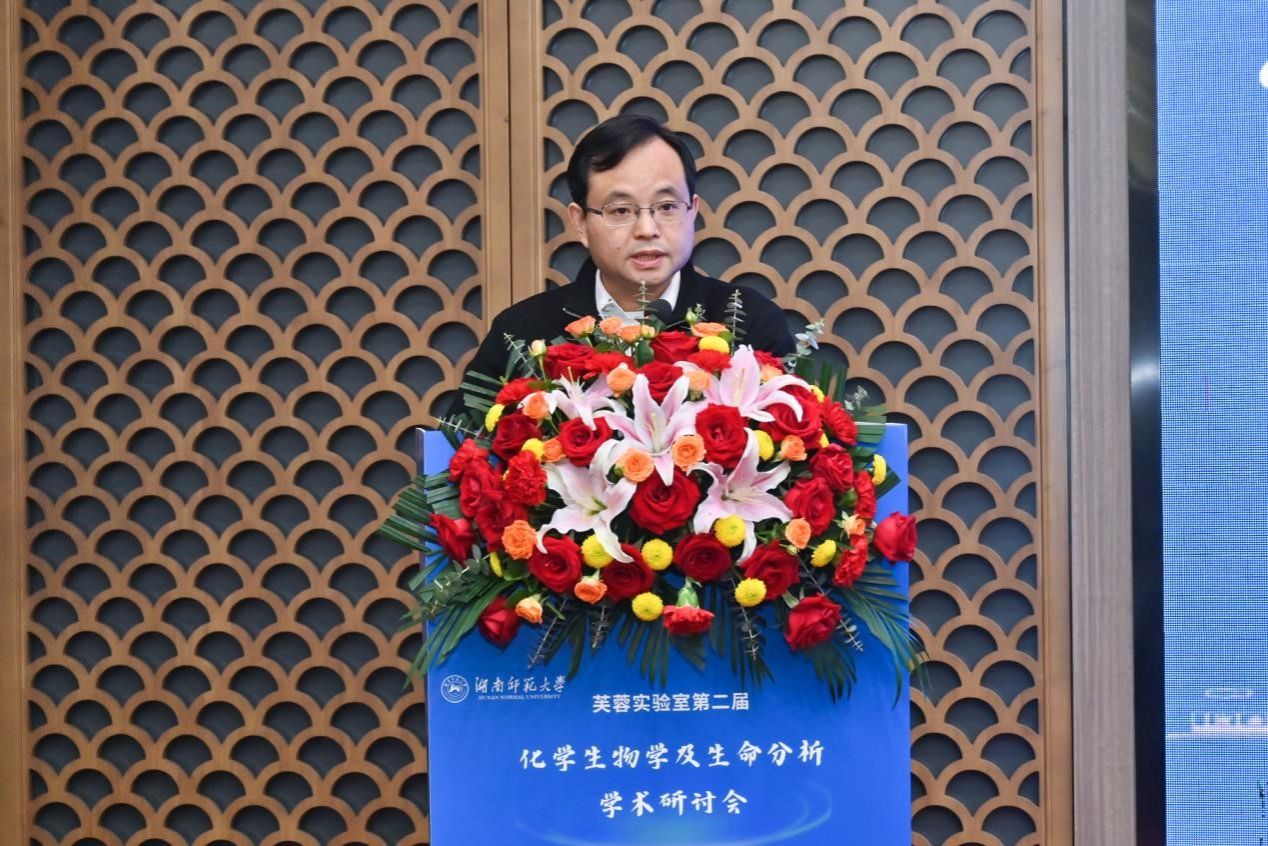 陈松向长期以来对湖南省科学技术的进步给予指导和帮助的各位专家表示衷心的感谢。他指出,芙蓉实验室和伟德国际victor1946联合举办本次“化学生物学及生命分析”学术研讨会是对我省科技发展的一种担当体现。他相信,通过本次学术会议的探讨与交流,会进一步促进化学生物学在各学科领域的交叉与渗透,为推动湖南省化学生物学与生命分析的发展提供有力支撑。