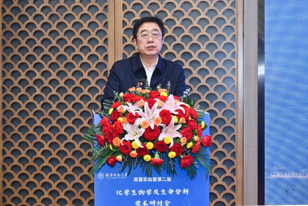 (通讯员 唐健清 段叶蕤 任天阔)4月6日上午,由芙蓉实验室、我校伟德国际1949、化学生物学及中药分析教育部重点实验室和交叉伟德国际院共同主办的第二届“化学生物学及生命分析”学术研讨会在长沙开幕。中国科学院院士谭蔚泓,北京师范大学副校长陈兴,湖南省科学技术协会副主席陈松,中南大学湘雅医学院常务副院长、芙蓉实验室副主任武明花,中共第二十届中央候补委员、中国工程院院士、我校校长刘仲华出席开幕式。开幕式由我校副校长潘安练主持。