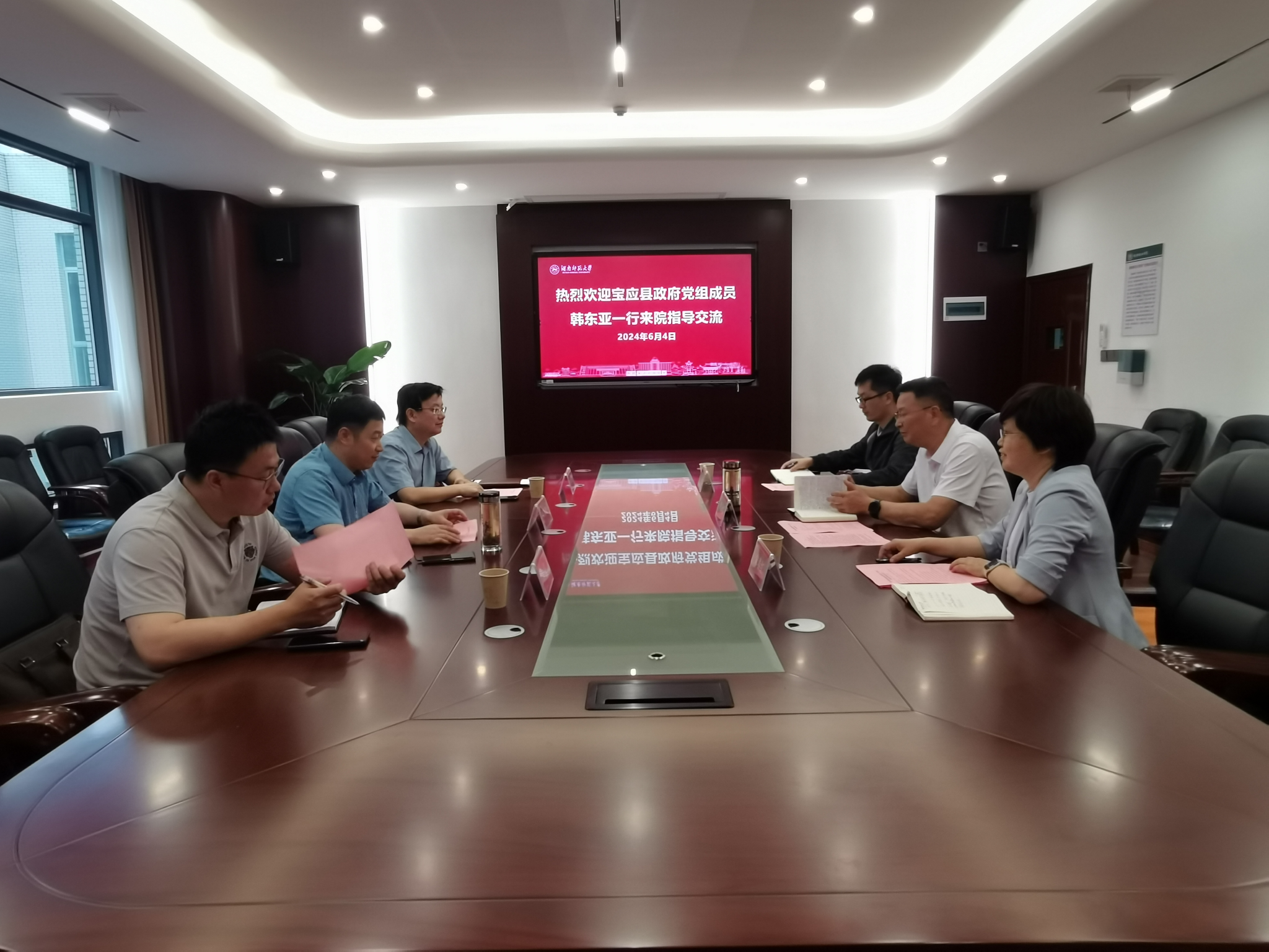 6月4日下午,宝应县政府党组成员、江苏省第16批科技镇长团扬州市电力装备产业团团长、中国(安徽)自由贸易试验区研究院执行院长韩东亚,宝应县机关事务管理服务中心综合管理科科长季超一行来我院交流,伟德国际1949党委书记谭东波、副院长宋春红,教授杨亚辉、副教授江浩陪同交流,座谈会在伟德国际1949和广生物会议室举行。