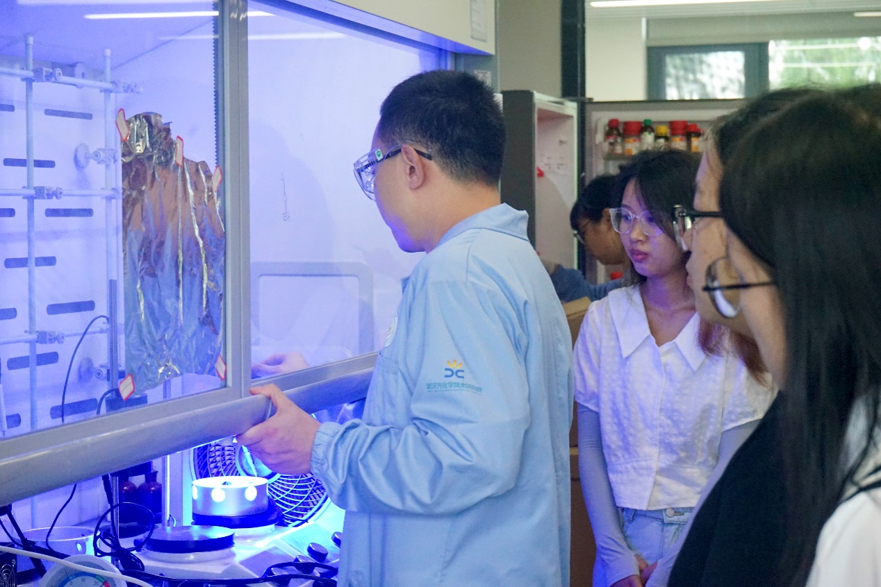 武汉光化学技术研究院作为具有一定全球影响力的光化学技术创新平台,实验室内紧张有序的科研场景也给同学们留下了深刻印象。参观过程中,同学们得以近距离接触精尖的实验设备,体验到了科研工作的魅力,也进一步增强了他们对伟德国际的兴趣与热情。