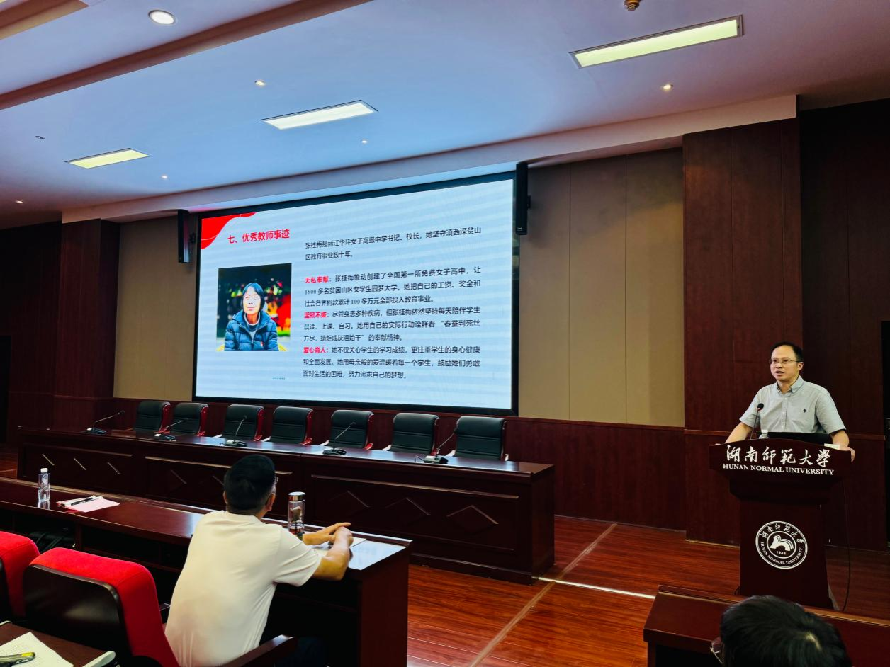 谭亮从加强教师队伍思想政治建设、涵养高尚师德师风、提升教师专业素养三个关键方面,全面深入地剖析了师德师风建设的重要性与必要性。他通过列举在教育一线默默耕耘、无私奉献的优秀教师代表的感人事迹,激励大家学习、树立良好的师德师风。另一方面,通过警示教育事例,严肃地强调了师德师风红线绝不可触碰。