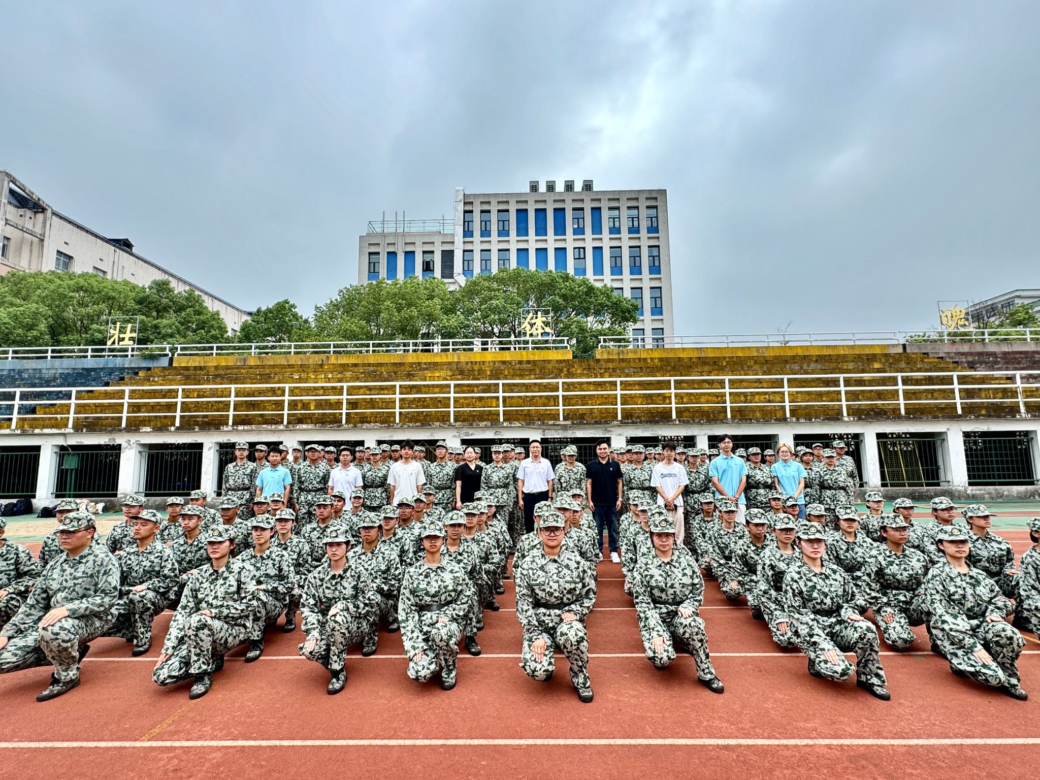 戎装磨意志,慰问暖人心。9月20日上午,院党委书记谭东波、党委副书记段婷带领学工办全体老师前往二里半校区田径场看望慰问正在军训的新生及教官们。