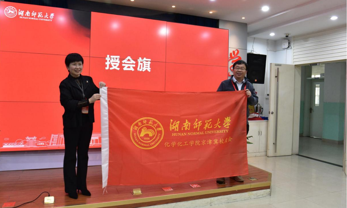 (黄丽萍为校友会授旗)