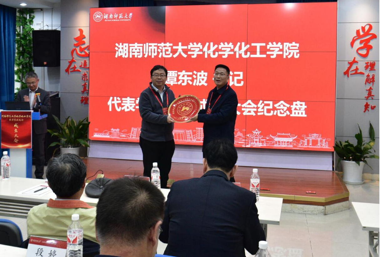 (谭东波代表伟德国际1949向校友会赠送成立大会纪念盘)