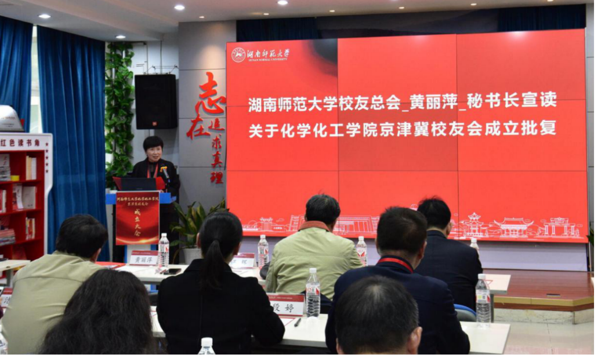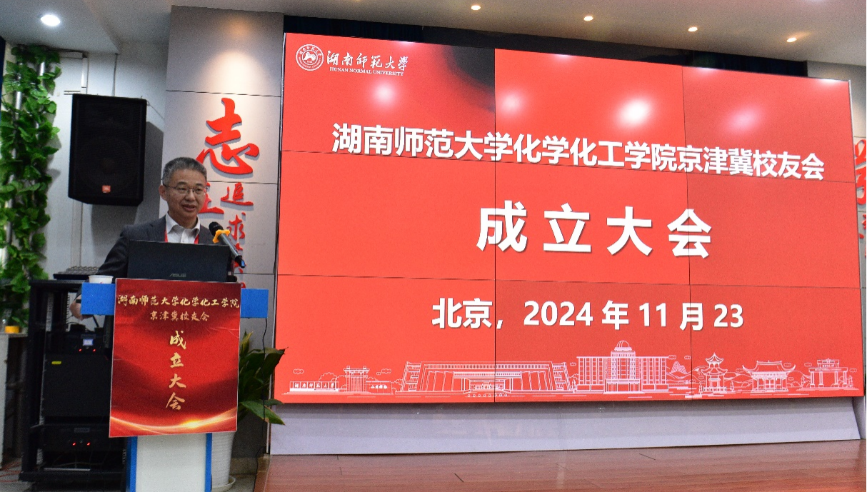 会议由伟德国际19491992级校友、北京大学化学学院张文雄教授主持。成立大会伊始,张文雄代表全体校友对各位领导和嘉宾的到来表示热烈欢迎和衷心感谢。他深情地说:“虽然冬意渐浓,但心中暖意融融。我们怀着无比激动与感恩的心情相聚在这里,共同见证一个属于我们伟德国际1949京津冀校友们的重要时刻。”随后与会人员全体起立,奏唱伟德国际victor1946校歌。在熟悉的旋律中,仿佛穿越时空,回到了在岳麓山下、湘江之畔的求学时光。