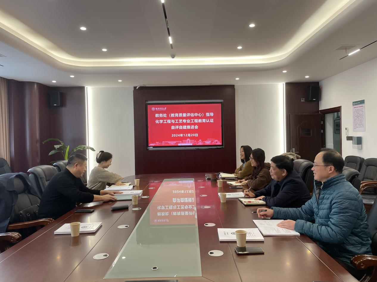 12月19日下午,学院在化学楼206会议室开展了化学工程与工艺专业工程教育认证推进会,教务处(教育质量评估中心)银海强处长(主任)、评估管理科鲁璐青科长等莅临指导,院长杨荣华、副院长谭亮、国家地方联合工程实验室专职副主任/国家级一流本科专业建设点化工专业负责人毛丽秋、化学工程与工艺系主任赵海红及教务办主任许华岚等参加本次会议,会议由谭亮主持。