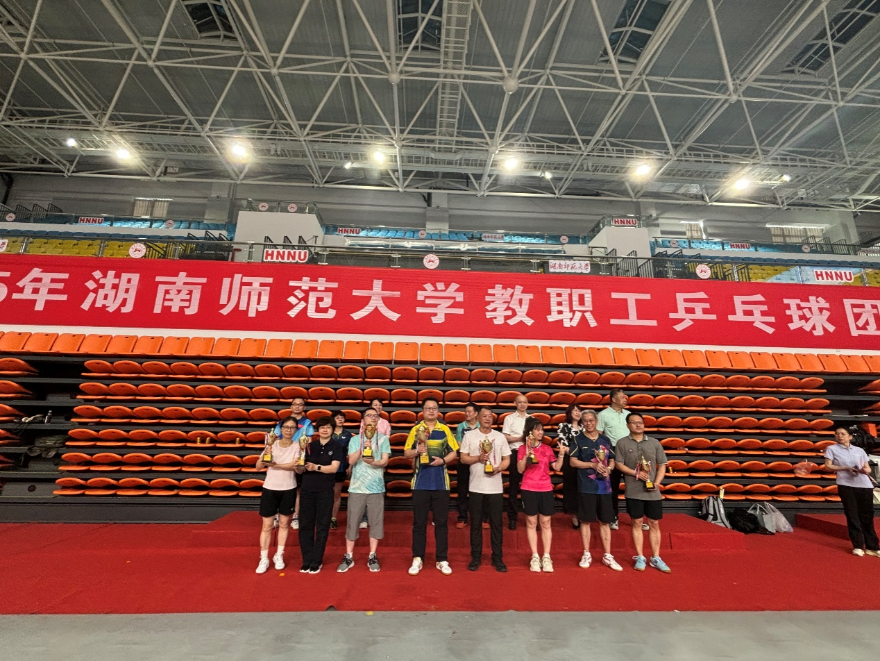 为贯彻落实全民健身国家战略,助力健康中国,不断提高教职工身体素质和健康水平。2025年伟德国际victor1946教职工乒乓球团体赛于5月8-9日在江湾体育馆举办。我院宋春红副院长率队参加此次比赛,经过两天的激烈角逐,最终斩获团体第五名的好成绩。