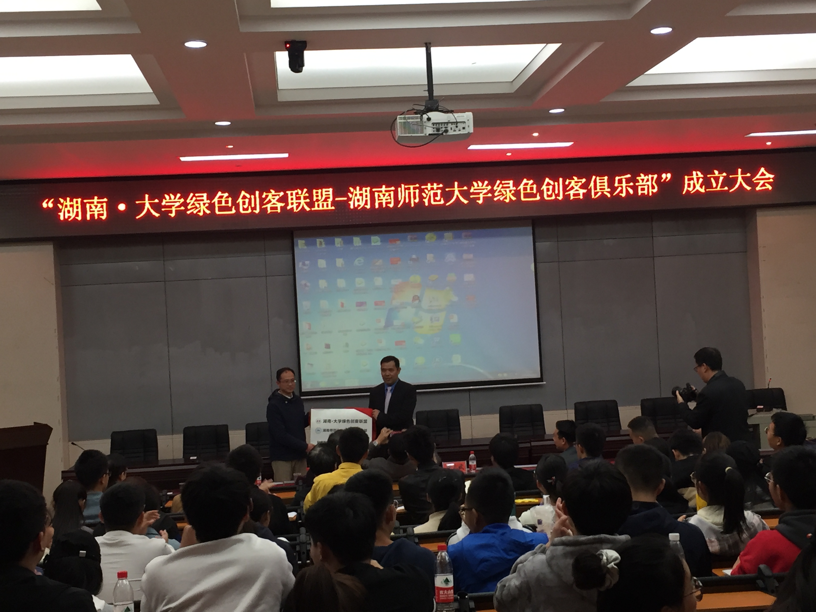 会上,梁志武教授代表“湖南·大学绿色创客联盟”为“伟德国际victor1946绿色创客俱乐部”挂牌,并作“本科教育质量工程与双万计划”主题报告,他从“六卓越一拔尖”的核心任务、战略部署、系统设计分别展开阐述,着重介绍了一流本科专业“双万计划”、工程教育认证的相关精神和实施情况。李文生副教授从创建背景、主要框架、创新特色、辐射推广、实践效果等多个方面对“湖南·大学绿色创客联盟”的架构与绿色创客培养实践情况进行了详细介绍。