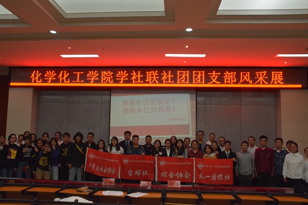 此次活动在国歌声中拉开序幕,屈杜炜致开场辞,言语中无不透露着对同学们大学生活的关心与期望,他鼓励同学们积极投身社团活动,丰富大学生活。化工院学社联的五家社团分别就支部简介、基础设计、特色设计以及展示互动四方面进行展示,使新成员们对社团的会徽会歌,社团荣誉以及社团精神有进一步的了解。此外,各社团更是以实验、情景剧、走秀等表演形式充分展现社团风采。风采展结束,社团参与人员与领导集体合影留念。
